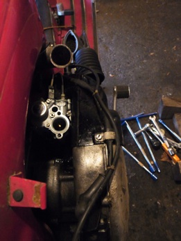 キックペダルを踏むと圧縮アリ、キャブ掃除をして、電装をチェックして、エンジンかかるかな?